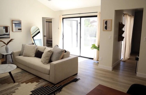 We warmly welcome you to book the valley glen casita. This beautiful three bedroom home features a large living space, dining area, eat in kitchen. The home is equip with a stove, wifi, washer and dryer, and on sight parking. The master bedroom has a king size bed, secondary room has a queen size bed, and lastly the third room has two full size beds. The home also features an outdoor space with outside seating. Centrally located near Begonias Lane Park and Pinetree Community school.