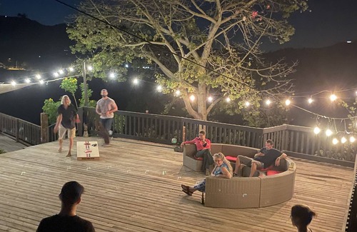 Nestled into the hillside of San Marcos you have an acre of private land that overlooks rural farms. Complete with a large deck, 2 living rooms, treehouse, and balconies for multi-families. 10 min to many major stores, restaurants, and freeways.