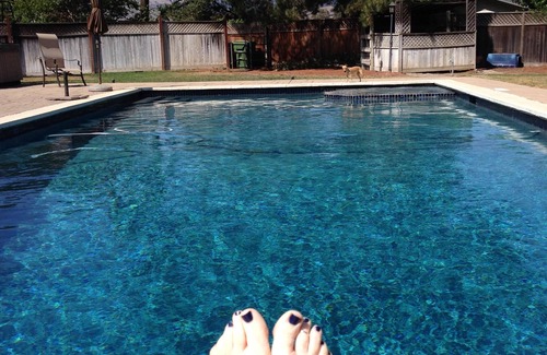 The swimming pool has a safety cover and is fully fenced, but not heated in the winter. The horses and chickens and yard and pool are cared for in our absence. The cat stays here while we are gone-he has auto food and water outside and you can let him in and out as he or you please. In other words, you'll feel like you're staying on a ranch!