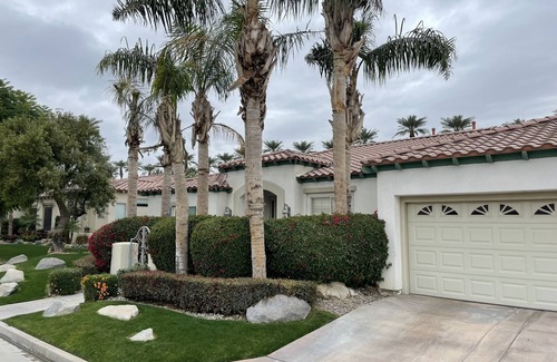 30-day or more stays only. This private home in a small gated community is a 5-minute drive from the Indian Wells Tennis Tournament and a short distance from the El Paseo shopping district and Old Town La Quinta. All 3 bedrooms are en suite and the fully appointed kitchen is open to the family room and provides views of the pool spa and fire pit in the backyard. Challenge your family or friends to a game of 8-ball in the pool room, relax and watch some TV in the family room, or sip some coffee in the front courtyard while enjoying the beautiful mountain views.