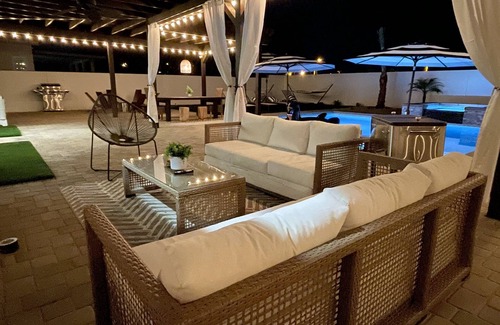 Resort style home with NEW saltwater pool & spa has 3 Bedrooms , 2 Bathrooms, and max occupancy of 10 people. The minimum rental for this property is 1 nights, but this can change depending on the season you plan on staying. Previous guests have given good rated it, and VRBO labeled it a top-rated House because of the excellent services rendered by the owner or manager of this House, and has consistently provided great experiences for their guests. Most families or guests that use it recommend it to their friends and some of them are repeat guests. House has a friendly neighborhood, and the Indio has interesting places to visit. If you want to learn more about the House in Indio, such as places to visit and things to do nearby, you can check below to learn more.