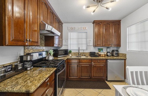 Cook up your favorite meals in the fully equipped kitchen, featuring high-quality appliances, ample counter space, and all the essentials for home-cooked dining. Just steps away, our large dining table comfortably seats six, perfect for enjoying meals together or planning the day’s adventures. Whether you're prepping beach snacks or hosting a dinner in, this kitchen makes it easy to feel at home.