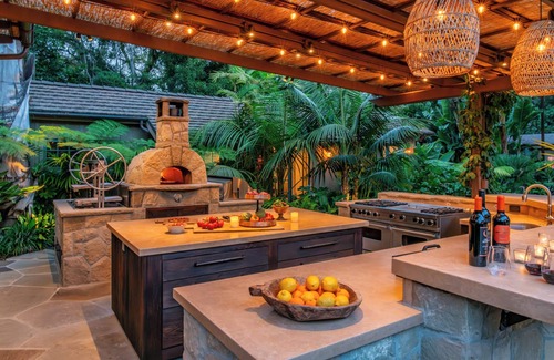 When you’re in Southern California, the real show is outside. Sea Ranch is 4 acres of lush gardens, with mature landscaping and two auto gates that keep you totally private from the outside world. The property features a large pool with a lap lane and Baja shelf, a built-in 10 person spa, 2 barrel Sauna's (dry sauna and steam sauna), fire pits, a deluxe alfresco kitchen, and a 50" flat screen TV mounted outside. Swings, play structures, yard games, an in-ground trampoline, bocce ball, badminton, darts, and ping-pong provide endless ways to play. Organic vegetable and herb gardens, berry vines, and citrus trees are always available to guests of Sea Ranch. Enjoy this property and transform your well-deserved vacation into a one-of-a-kind experience.