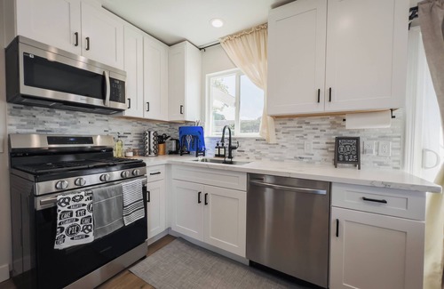 This gem ensures your privacy with only one neighbor by your side. Step inside to discover modern yet cozy decor. The fully stocked kitchen caters to your culinary adventures, equipped with every cooking, dining, and cleaning necessity.