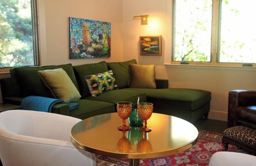 Located 1 mile from downtown Murphys on 6.5 acres. Private but not remote. New construction, this charming little cottage is fresh and unique. Warm, colorful and friendly with a nice combination of new and antique furnishings. Comfort is our primary focus, king sized bed, all cotton linens, sparkly bathroom, large deck with view, beautiful tile and granite kitchen and cozy living room. There’s also a queen sized aero bed that can be rolled out on the deck if you choose to sleep under the stars. Walking distance to Indian Rock Vineyards and tasting room.The evenings are filled with the sounds of frogs and crickets, turn off the lights for great star gazing. Deer, turkey, quail and rabbits are frequent visitors.