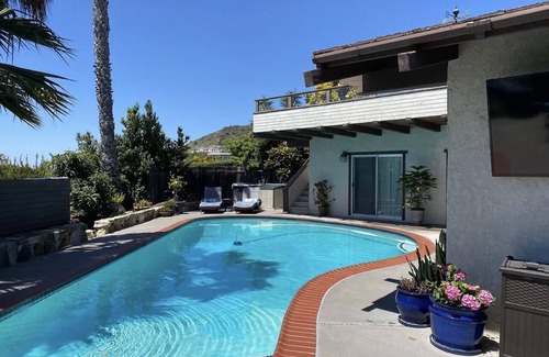 Amazing Laguna Beach summer home on huge 9,786 lot within a short distance to the Montage Resort, famous Victoria and Aliso beaches, Lang Park, and the Aliso Creek Shopping Center. Enjoy fine dining at Starfish, La Sirena, O Sushi, Z pizza and the 3 gourmet restaurants at the Montage. This home is 1,812 square feet and consists of 3 bedrooms plus a den and 2 baths with a heated pool and a incredible roof top deck, great for outdoor dining, entertainment, beautiful ocean, Catalina, and sunset views. This property is in a quiet family neighborhood located in Driftwood Estates which sits just south of the busy downtown Laguna area away from all the hustle and bustle. This South Laguna beach summer rental near is the famous Montage Resort and within walking distance to some of the most beautiful secluded coves and beaches Laguna has to offer. This home is perfect for families looking for an amazing summer Laguna Beach coastal experience.