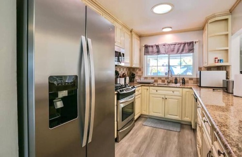 Bring everyone to our spacious Silicon Valley home, freshly updated for your comfort. Pet friendly. AC. With 2 master bedrooms, 2 king beds, 1 queen, and 2 twins in four chic rooms, plus 3 full bathrooms, morning traffic jams are a thing of the past. Enjoy peace in a quiet area, moments from parks, and Campbell's buzz. Walking distance to parks, restaurants, and groceries. Two driveway spots simplify parking. Ideal for family fun or business trips—it's your fully-stocked Silicon Valley haven.