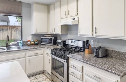 All bedrooms located upstairs with great light. Extra spacious Master Suite with sitting area and en suite bathroom. Master Bath has Dual Vanities and Luxurious Shower. Master bedroom has Cal King Bed. Two rooms have queen beds and one room has two twin beds. Sleep 8 people in beds! Convenient three car garage! Located near many shopping districts and grocery stores. Play ground and park are located just around the corner from the property. Great Manager who will take care of your requests. We are looking forward to having you stay with us.