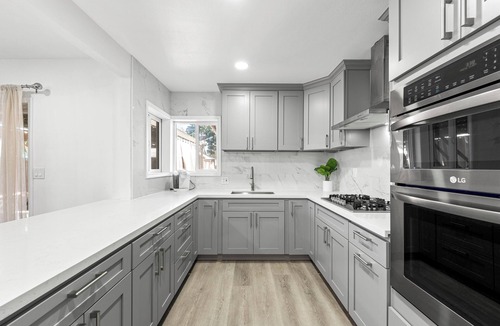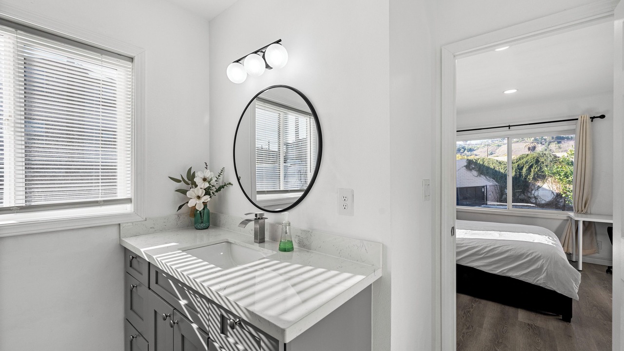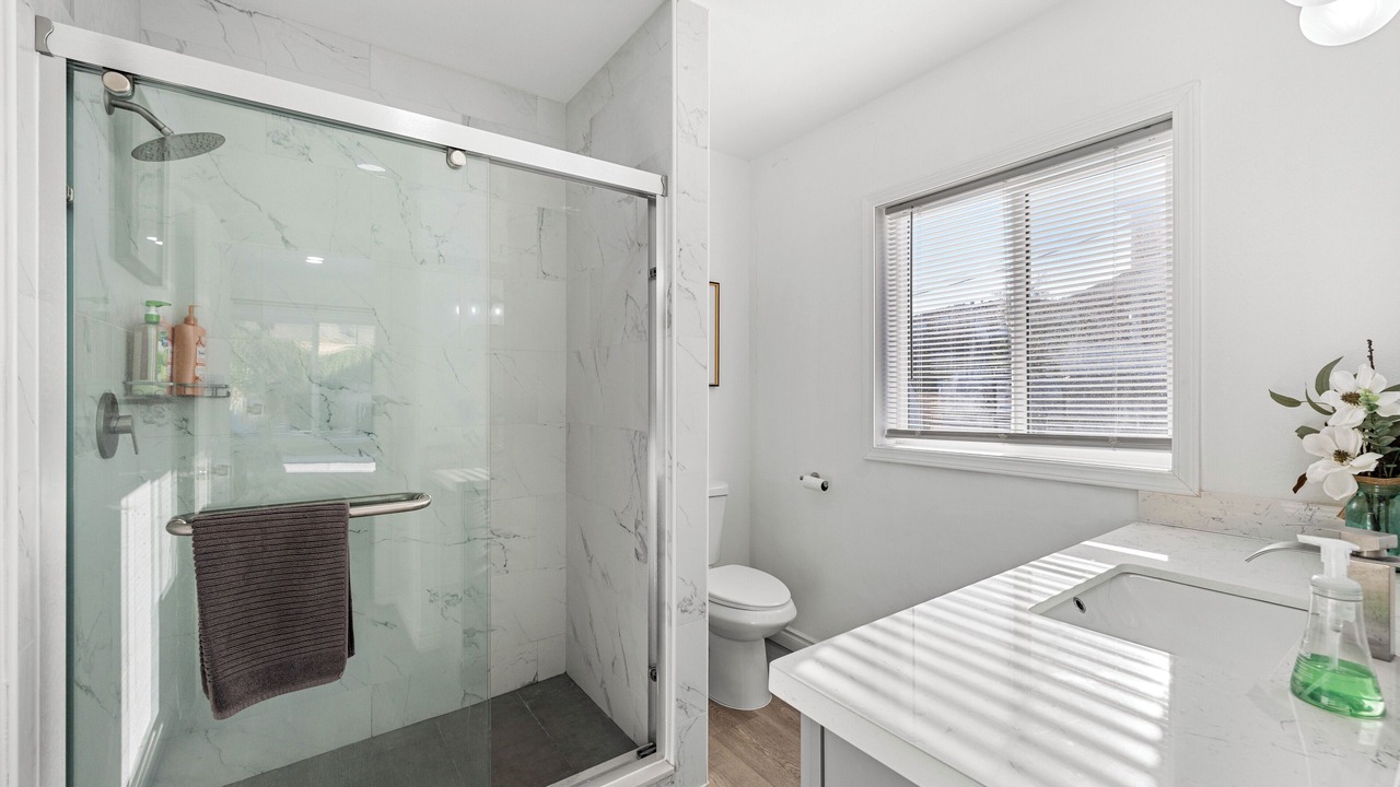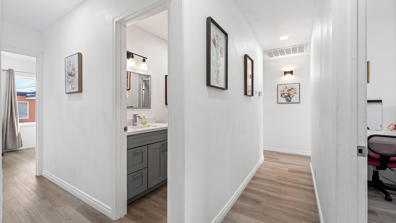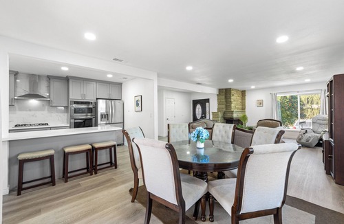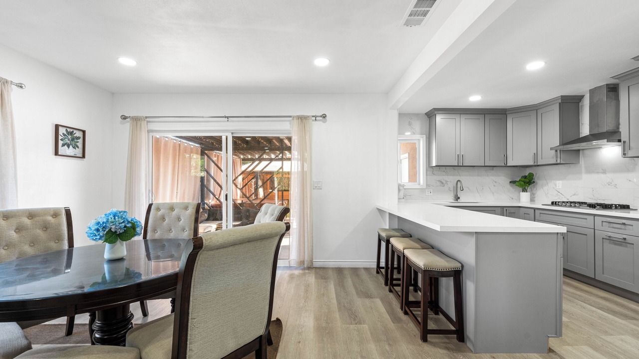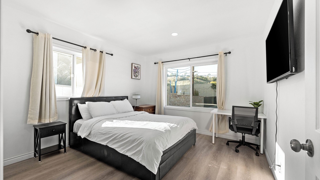 Relax in this updated 4-bedroom, 3-bathroom home in central Pomona—just minutes from Highway 10. Perfect for families or business travelers, it features two en-suite bedrooms, smart TVs in every room, a fully equipped kitchen, and cozy shared spaces.