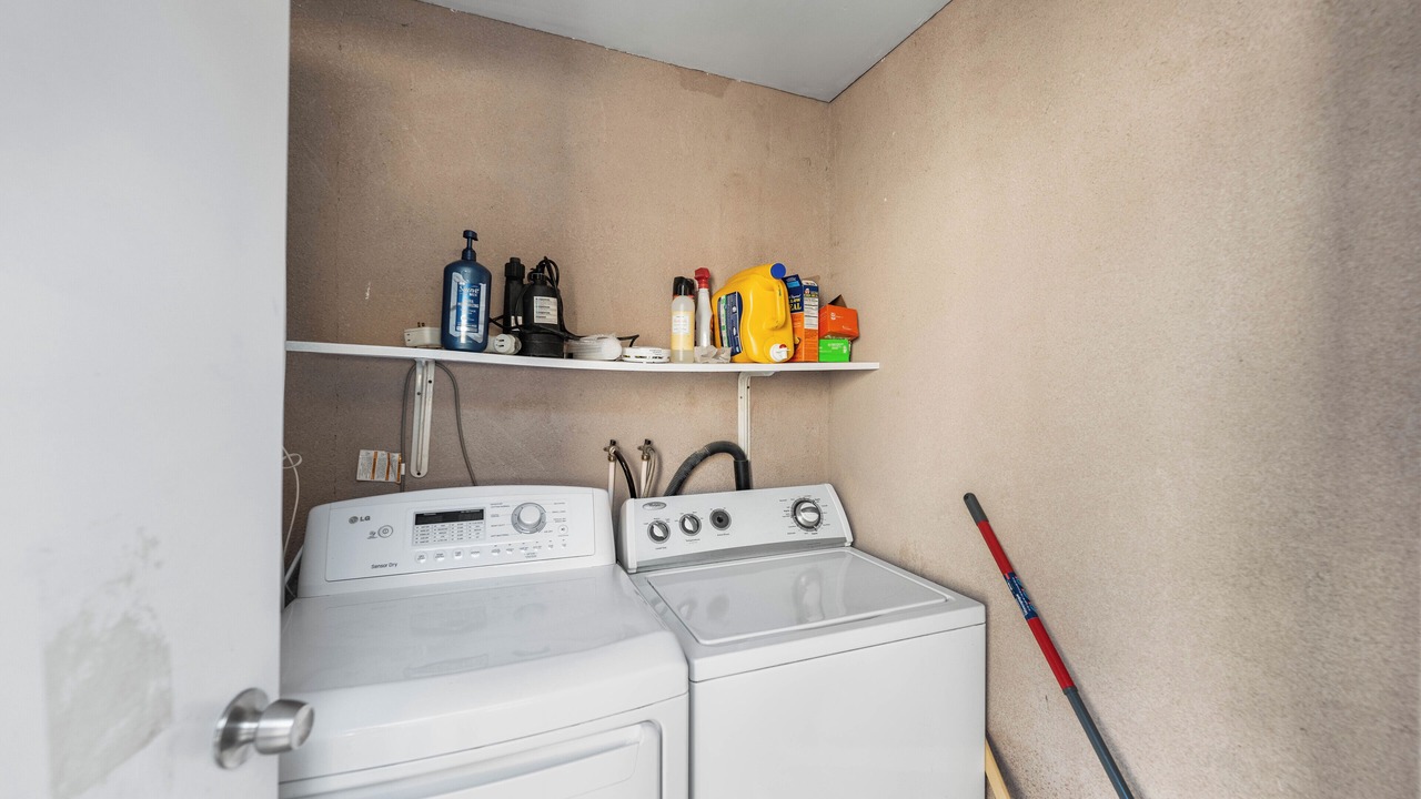 Laundry: Washer and dryer located in the backyard laundry room