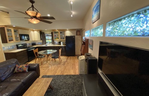 This roomy Studio has everything you need to enjoy your vacation near the beach. Beautiful custom furnishings with hardwood floors, luxurious bathroom, full kitchen, and dining area. Everything provided including 4 beach cruiser bikes, beach towels, beach chairs and boogie boards. Well behaved pets are welcome. There is no extra pet fee. Great neighborhood in North PB on Tourmaline just 2 1/2 blocks from the beach. Restaurants, bars, shops, all with walking distance. We even have the fixings for two margaritas, chips and salsa in your room ready for arrival.
