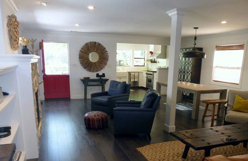 In addition to the spacious master bedroom, a Restoration Hardware queen- size sleeper sofa is in the living room adjacent to a half bath. Additionally, we have a 1965 Airstream in original condition which is a fun play space for kids and adults alike.