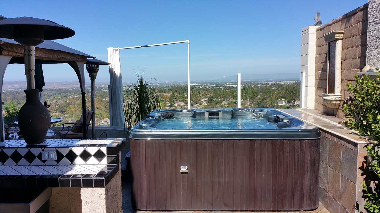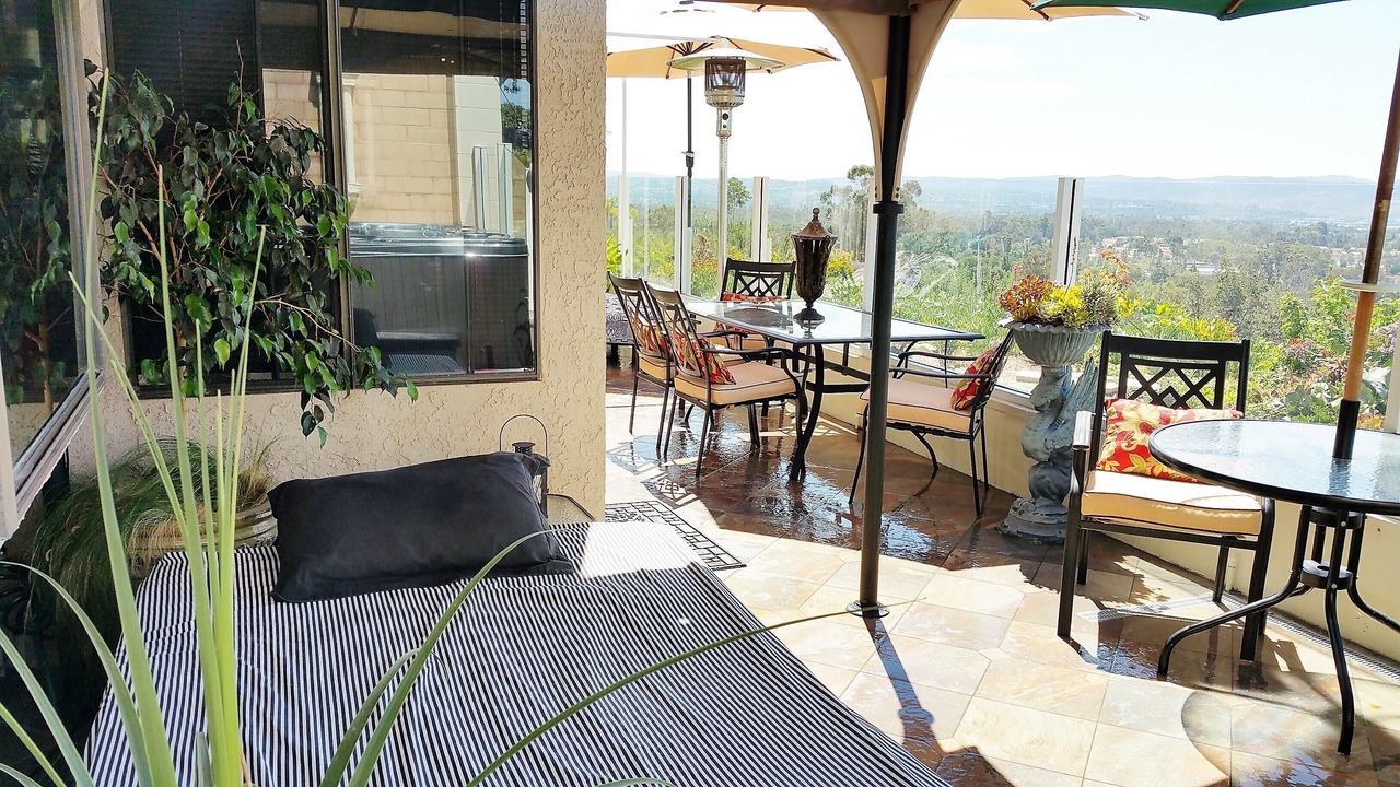 This home epitomizes the outdoor lifestyle that Orange County is world famous for! There's no better place to watch the sunsets and the stars, than from this home's luxurious outdoor living area: two (memory foam) cabanas (one covered, the other with misters), private seating area, outdoor kitchen with bar and sink, outdoor dining table with 6 chairs, outdoor breakfast or afternoon tea table, LED-lighted sun umbrellas, and 8-person jacuzzi set in a backdrop of a waterfall and side garden with the 'love-birds' fountain. On a nightly basis, you can see the Disneyland fireworks from the back yard.