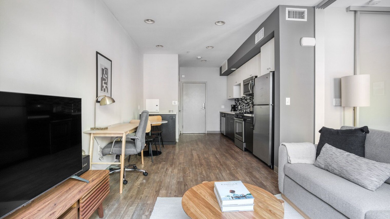 Gorgeous furniture, fully-equipped kitchen, smart TV, and a premium wireless speaker are just a few of the amenities you’ll find inside this one bedroom apartment. Ideally located in Los Angeles, you’ll find a lot to love outside as well. When you’re ready to relax, you’ll be happy to discover every Blueground bedroom comes with superior quality mattresses, luxury linens, and cozy towels. We handle everything so you can simply show up and start living. This apartment also offers in-apartment laundry.