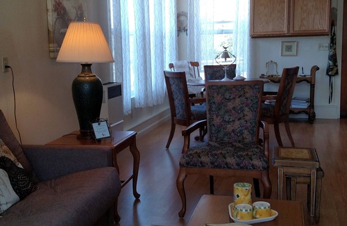 Garden Suite is a charming, None Smoking, one bedroom apartment with beautiful pasture views. It is located within walking distance to our Victorian Village downtown. Outside patio looking over a huge private yard perfect for the first cup of coffee, and your happy dogs!! Your little friends can stay with you for only $25.00 per night/per dog. (we do not allow cats).