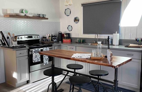 Take it easy at this unique and tranquil getaway with stunning lake and mountain views. Our romantic little 480 sq ft house is perfect for a couples getaway. It is located in a quiet town surrounded by nature. This 1 bed, 1 bath offers a large outdoor private patio and a unique skylight to naturally brighten the space.