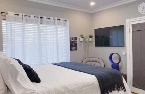 This private guest suite (attached behind the main house) is located in a quiet, residential neighborhood. With your own free designated parking space on the driveway and guided walkway leading to its private main entrance, guests will feel at peace having their own secluded, retreat home to enjoy. Consisting of 1 large bedroom (with walk-in closet and a dedicated work space), its own kitchenette, and private bathroom, this newly remodeled and enhanced guest suite is designed to provide the highest quality and comfort experience!
