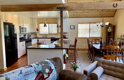 6 miles from Big Bear Lake and 9 miles to the village shopping and restaurants. This home features 3 bedrooms plus a loft area and 2 bathrooms. An amazing open floor plan in the kitchen and living room allow you access to enjoy your guests while cooking in the fully equipped kitchen or watching the game on the 65” plasma screen in the living room.