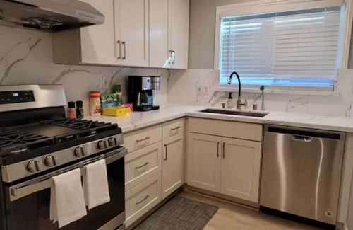 Tropical Green House style, newly remodeled, beautifully decorated, modern home. Tons of windows with natural light throughout, comfy beds, and sofas. If you love cooking, the kitchen is fully equipped for a chef-designed and stocked kitchen. Perfect for a family or professionals for short or long stays in the East Bay. Prime location, a 3-minute drive to downtown Hayward, a 2-minute drive to Bart Station, and only half a mile away from highway 880.