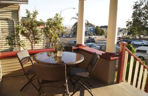 Located in a Historic District on the Slope above Downtown San Diego, this beautiful Queen Ann Victorian accommodates up to 2 guests. This unit is completely private with a separate entry, living space, 2 bedrooms and kitchen. No expense was spared in the design of this highly upgraded unit which features an exterior deck with views of the ocean, Coronado Bridge and the islands off the coast. The living area features a full size leather couch, LED smart TV, dining table and chairs and ceiling fan. The kitchen is beautifully upgraded complete with everything you will need to cook your own meals during your stay with us. The bathroom is separate from the bedrooms and equipped with plenty of towels, shampoo, conditioner, body wash and a blow dryer. There is a Queen bed in the Master bedroom and Full size bed in the second bedroom. Both beds have memory foam mattresses which are very comfortable and each has a ceiling fan and air conditioner. The unit also features a large storage space containing boogie boards, beach towels and chairs, make-up mirror, a high chair for the little ones and an iron and board. An additional LED smart TV is located in the Master bedroom with cable access and streaming capability. The unit is beautifully decorated in a modern classic design. Additional features include a Backyard common areas with Barbecue Grill, Gazebo with table and chairs and Outdoor Fireplace. Our property is located less than 10 minutes driving distance to the Convention Center, Gas Lamp district, Ball Park, Coronado Island, the Airport, Balboa Park and the Zoo. Freeway access is located around the corner and bus stop transits to and from downtown can be found within a block. All local beaches are within easy driving distance of the property. Some of Golden Hill’s most popular spots such as the Turf Club, Panchitas Bakery, Luigi's Pizza and Golden Hill Park are all within easy walking distance. Enjoy a morning cup of coffee and Coronado Bay Bridge views from the patio table and chairs provided on the front porch. There is an on-site coin operated laundry. Enjoy these beautiful and unique accommodations while experiencing all the best that San Diego has to offer.