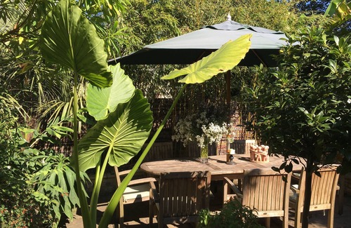 the gardens have different sections such as subtropical terrace with BBQ and large wooden table, the English garden with croquet lawn and sundowner bench, swing seat, daytime beds and the ponds garden with pond for turtles, fish, chicken, sunrise bench, summerhouse, zen area from ground floor . Please note that the access to the garden is through our private quarters and is only daytime possible.