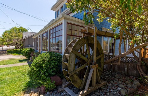 Built in 1906, The Water Wheel Victorian blends historic charm with a relaxed, updated style. Full of personality, it features a glazed sunporch, a well-equipped kitchen, and four comfy bedrooms (3 queen, 1 king). The enclosed back yard includes optional seating and a propane BBQ grill.