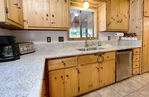 Inside, you’ll find a fully equipped kitchen with modern appliances, including a dishwasher, microwave, and disposal, plus all the cookware, dishes, and utensils you’ll need for your stay. The home also features a washer and dryer, 52" flat-screen HDTV with cable, high-speed wireless internet, stereo with USB/Bluetooth connectivity, and a cozy gas woodstove for those cool Tahoe evenings. With level access and parking for up to five vehicles (in driveway only, no street parking), it’s both easy and convenient year-round.