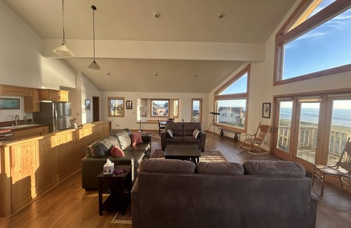 Unobstructed, spectacular ocean views. Our house is located in the town of Shelter Cove on the Lost Coast of California. Walking distance to beaches and restaurants, this is the perfect location for your Lost Coast adventure. Plenty of parking and boat parking. Half a mile from the beach, the boat ramp and both Shelter Cove restaurants. Walk across the street to the golf course. Or walk to the house from your plane. Watch the whales from the living room and listen to the pounding surf. The house has a comfortable 600+sq ft great room with panoramic views of the ocean, crashing waves and the Lost Coast. Cook your meals on the commercial grade stove as you relax with the Pacific Ocean spreading out before you. Watch the small private planes take off and land or wave at the golfers from the bedroom windows. Spot whales, sea lions and even great white sharks from the front deck.